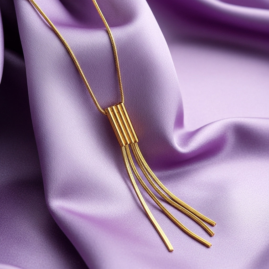 Refined in movement and deliberate in design, the Tavira Linear Fall Pendant Necklace embodies contemporary minimalism with understated sophistication. The pendant features a compact cylindrical anchor from which slender, elongated strands cascade with graceful independence, creating visual interest through subtle motion and depth. Crafted with meticulous attention to detail, each element showcases smooth, softly contoured surfaces finished in high-polish gold-tone that captures light with nuanced brilliance. The linear composition draws the eye downward in an elegant vertical line—confident yet restrained. Suspended from a delicate chain, the pendant sits naturally at the neckline, maintaining perfect balance while remaining remarkably lightweight and comfortable for all